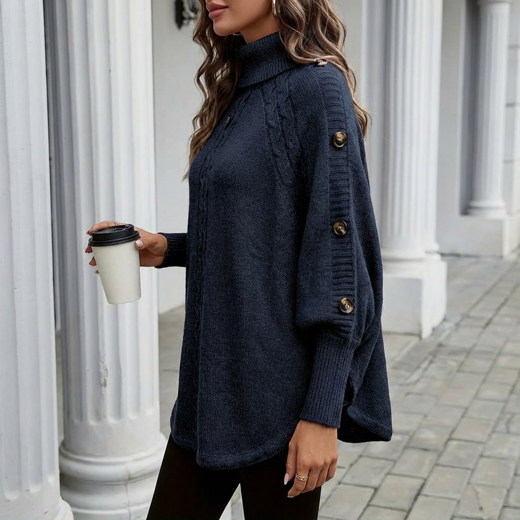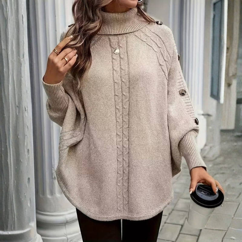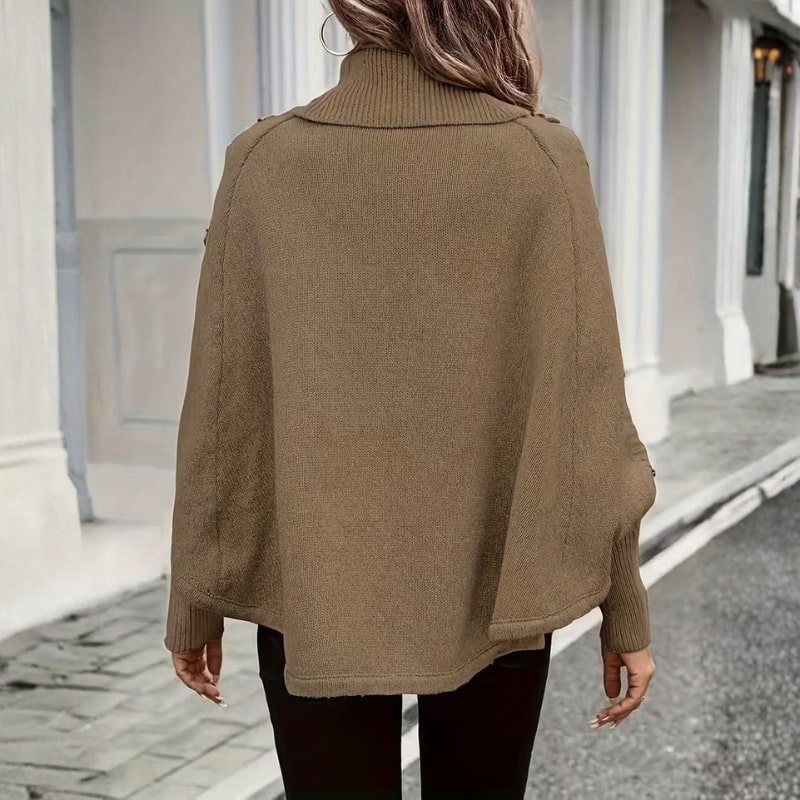 A soft knit women’s sweater designed for cooler seasons, featuring a warm high-neck silhouette, a twisted front detail, and a relaxed fit for everyday wear. This turtleneck sweater offers lightweight comfort with a flattering drape, making it easy to pair with jeans, trousers, or skirts for polished daily styling.